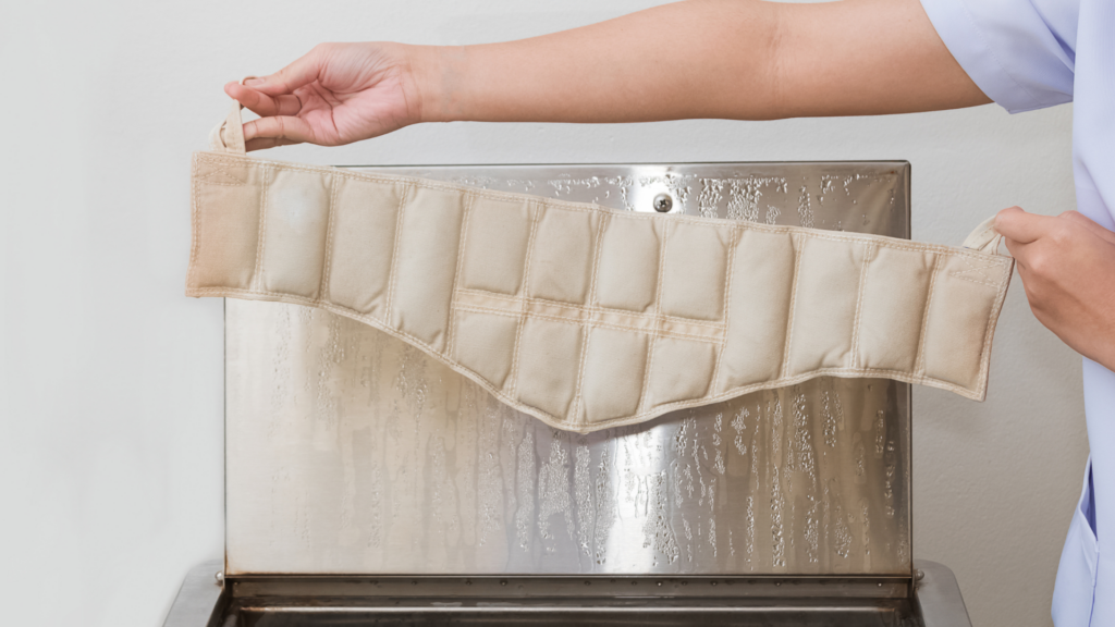 The weighted, moist heat from the packs penetrates deep into your muscles and helps them relax. Heat packs help open up blood vessels, improve blood flow, and ease pain. This kind of therapy is great for people who have stiff joints, muscle spasms, or long-term pain. The bentonite clay in the packs helps them stay warm and moist for a long time.